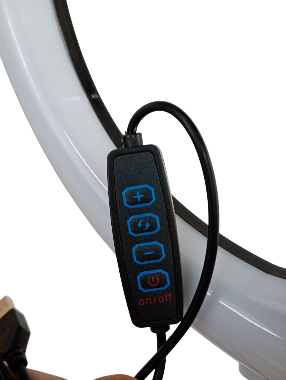 El aro de luz se conecta mediante cable USB (INCLUIDO).