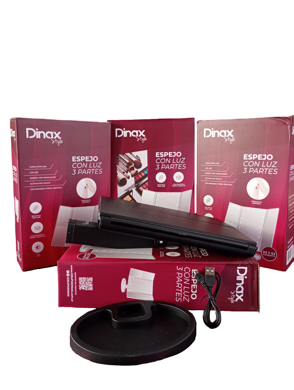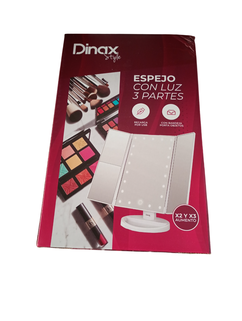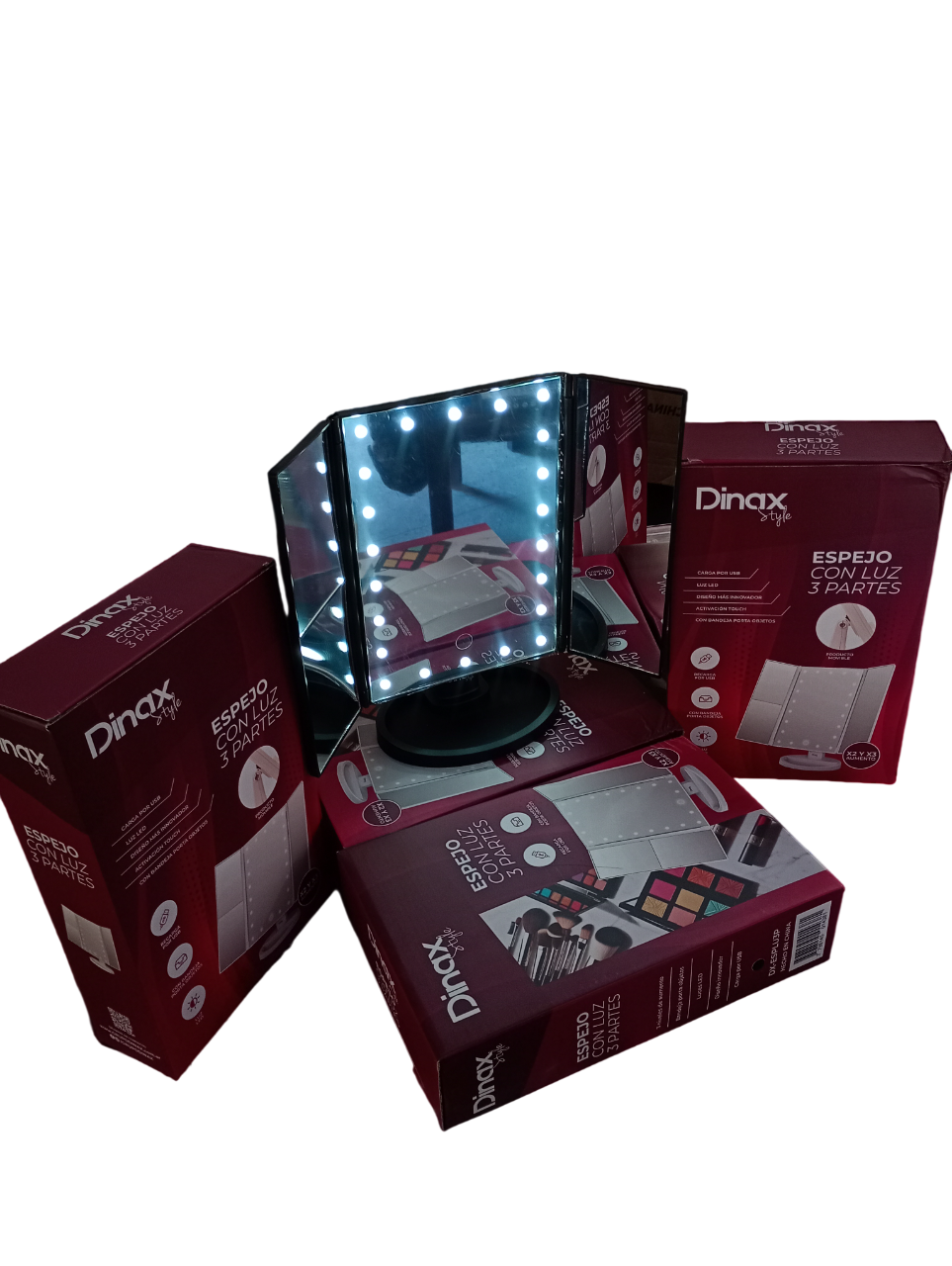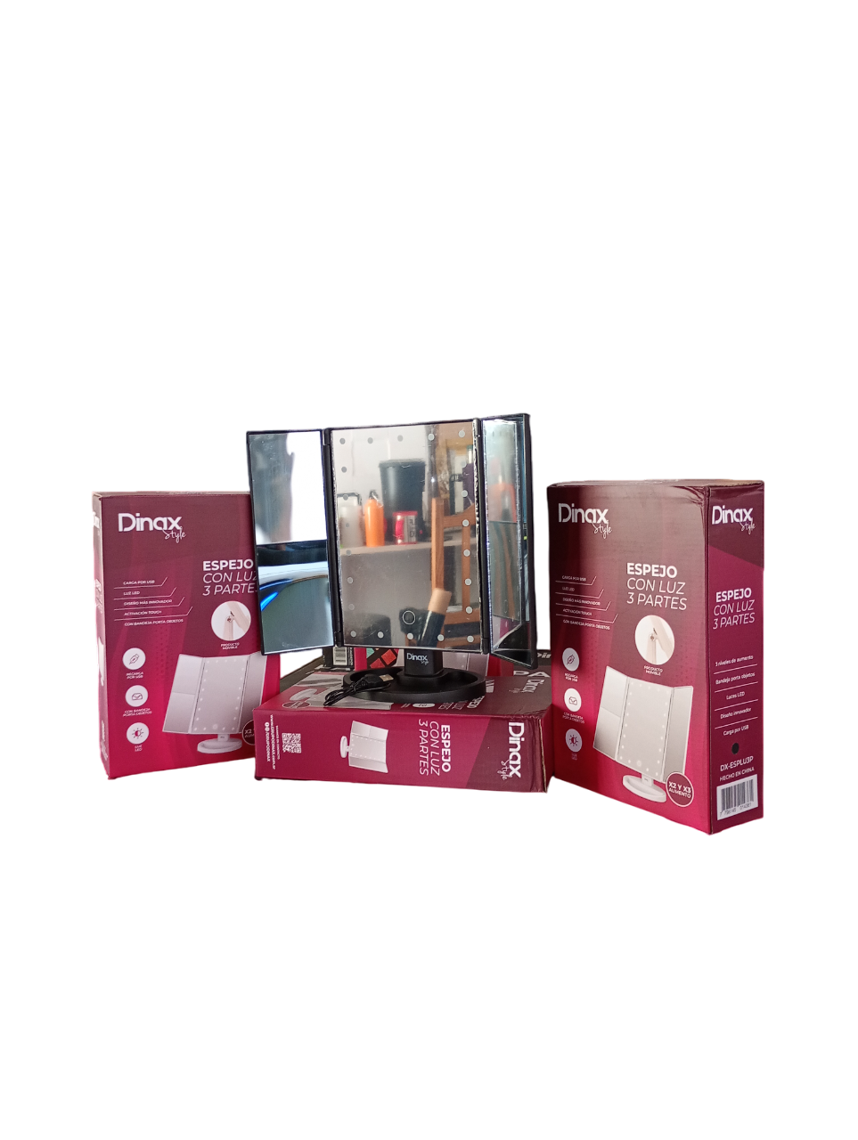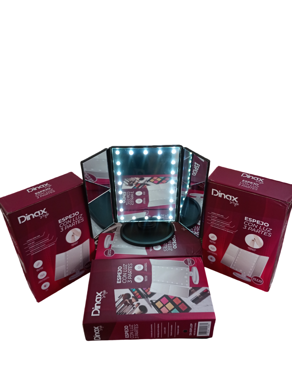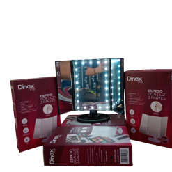 Espejo de triple panel con iluminación fría USB o Pilas marca Dinax