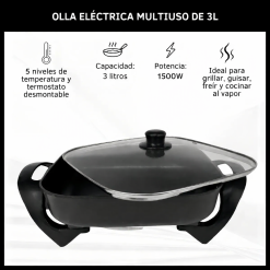 Funciones: Estofar, Freír, Grillar, Hornear, Tostar, y Cocinar al Vapor.